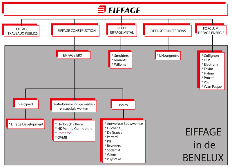Eiffage Benelux maakt deel uit van de branche Eiffage Construction, een van de vier entiteiten binnen de Eiffage groep, naast Eiffage Infrastructures, Eiffage Énergie Systèmes en Eiffage Concessions.