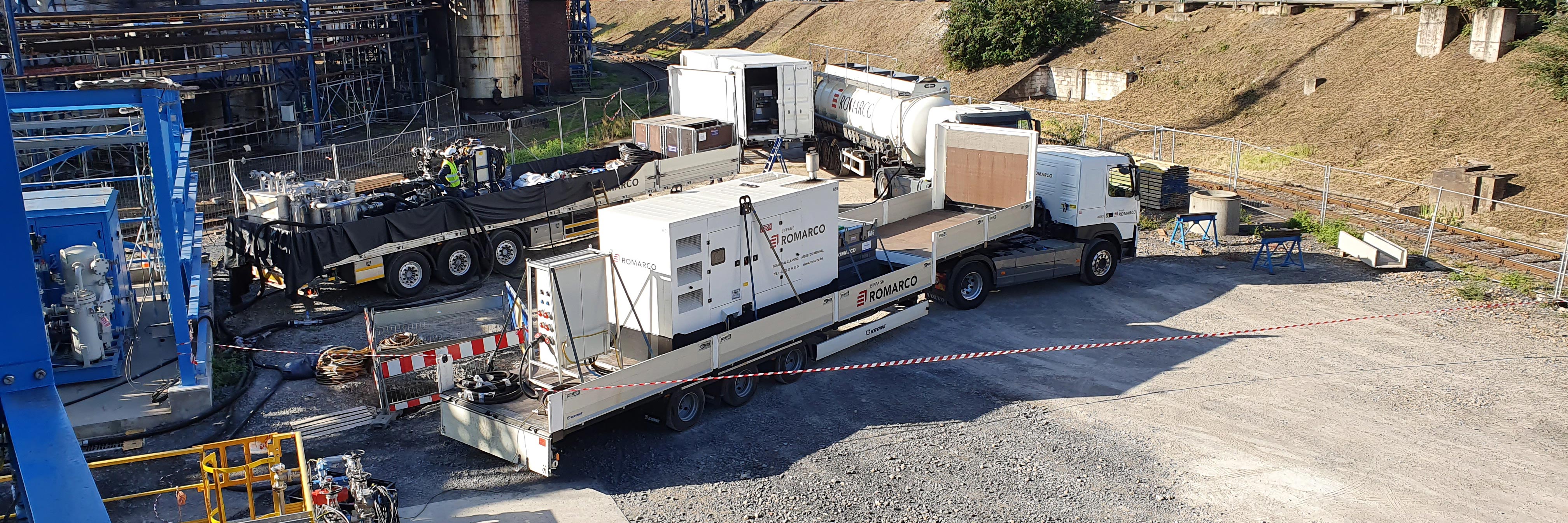 ROMARCO beschikt over een zestigtal pompunits waarvan het debiet varieert tussen de 15 en 750 m³/uur. Met behulp van onze warmtewisselaars kunnen de behandelingsvloeistoffen tot op de gewenste temperatuur verwarmd worden. Onze filterinstallaties zorgen voor de correcte filtering van de behandelingsvloeistoffen van 500 tot 1 micron. Voor de behandeling van tanks en distillatiekolommen beschikken wij over diverse tankwasmachines. Solvent reinigingen en werken in risicovolle zones worden uitgevoerd met circulatietanks voorzien van actief koolfilters, gekoppeld aan Eexd pompunits.