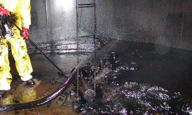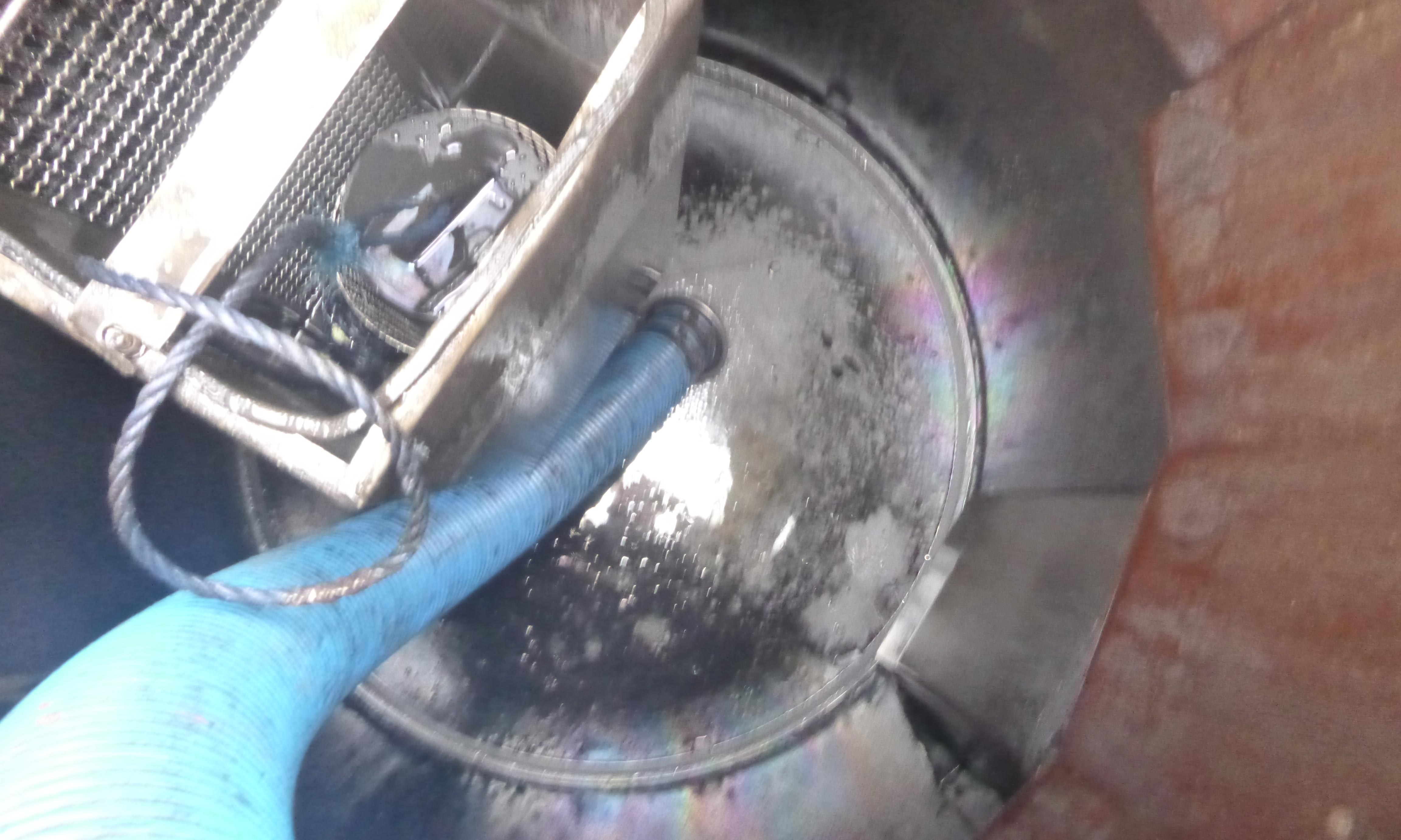 Eerst wordt de tank leeggezogen en gereinigd met water onder hoge druk.